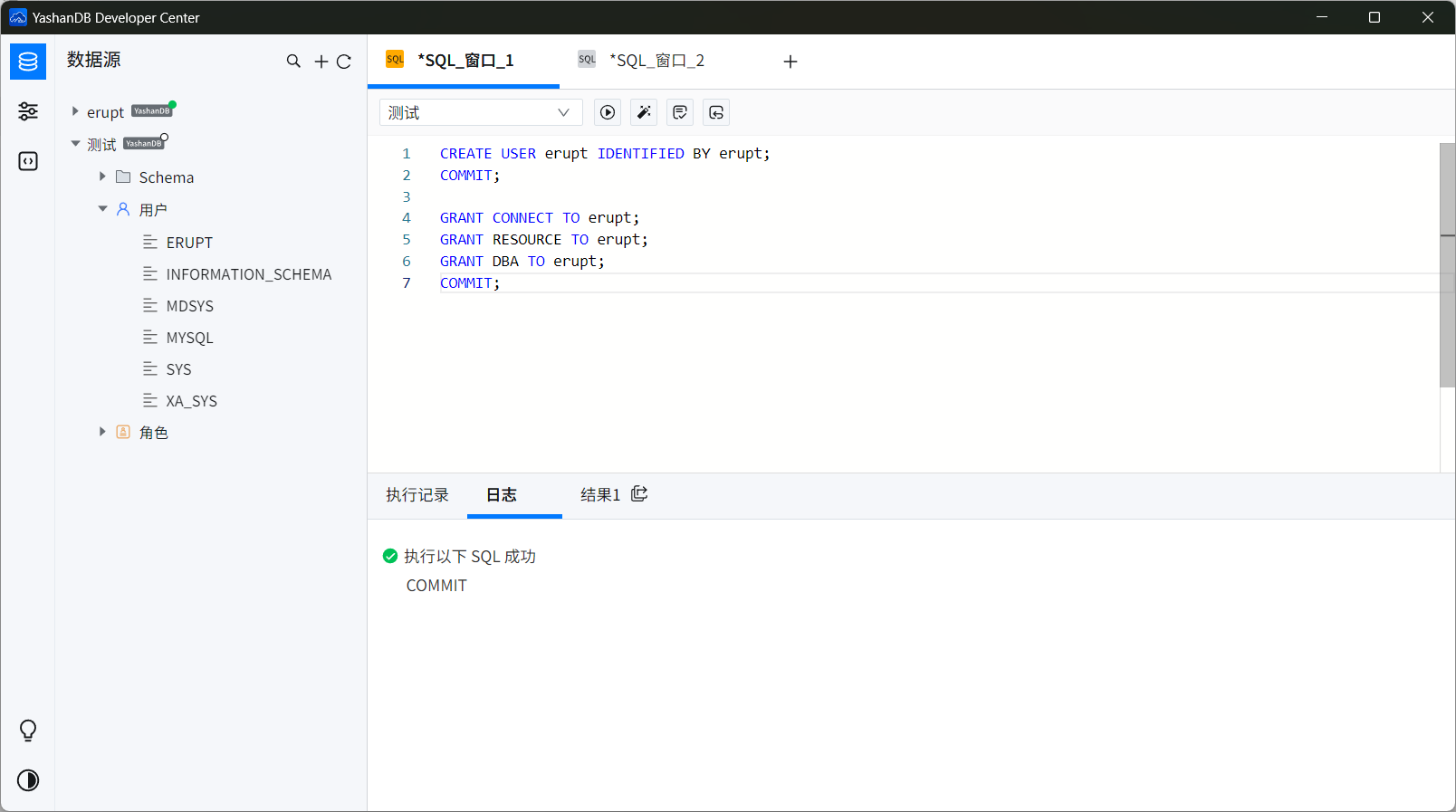 CREATE USER erupt IDENTIFIED BY erupt;