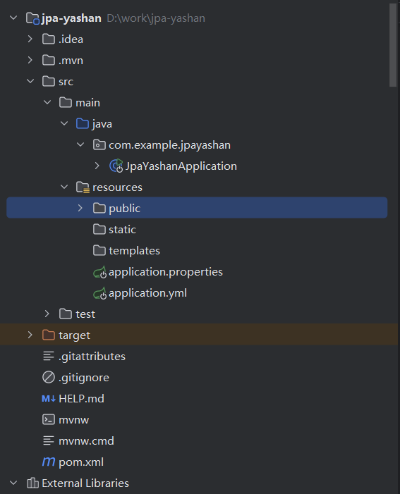 使用IDEA创建SpringJPA项目,创建完成后项目结构如下