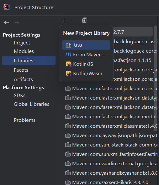 ProjectStructure,使用Libraries添加YashanDB的连接驱动,对于多模块,只需要添加到对应的模块即可