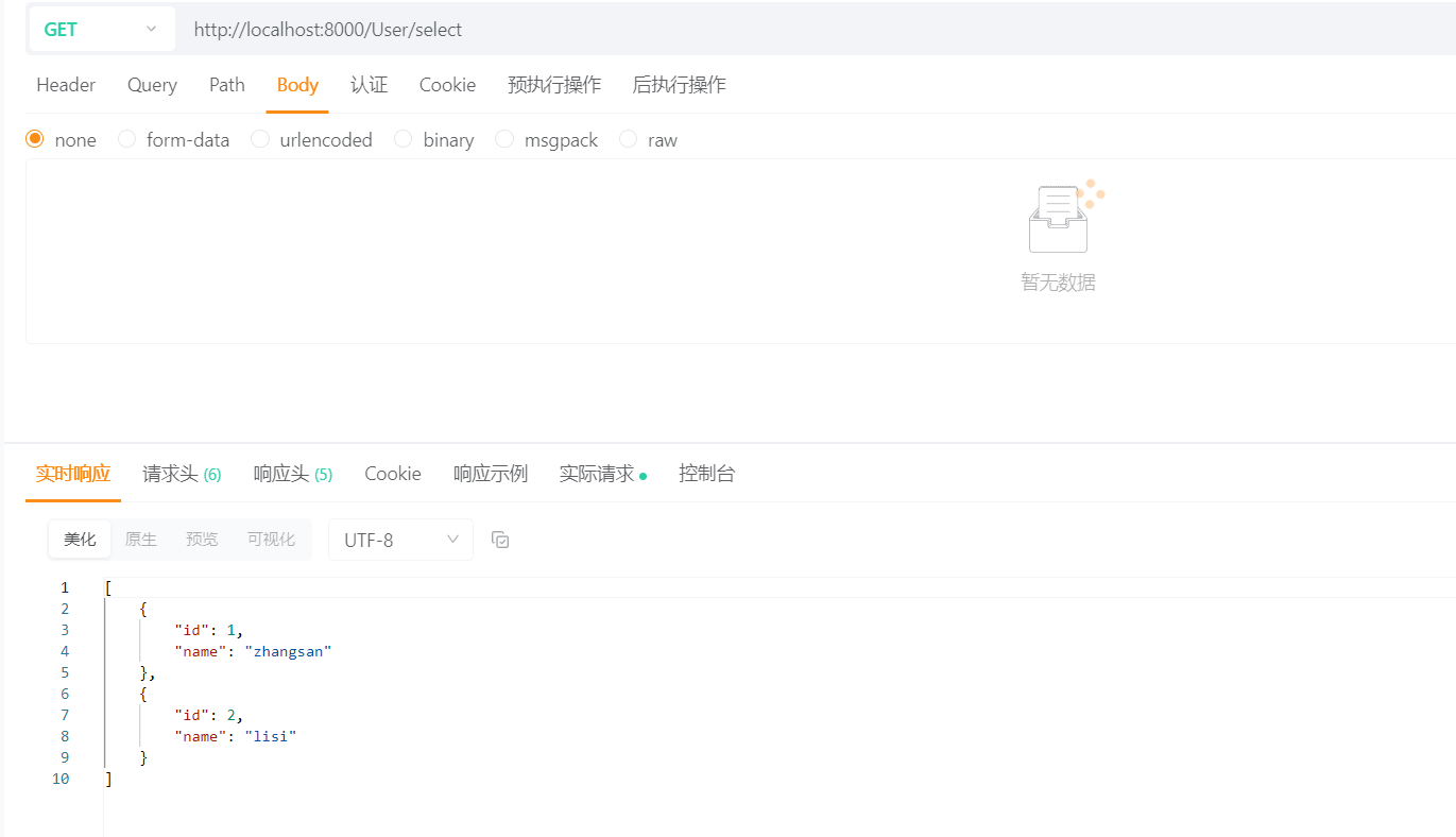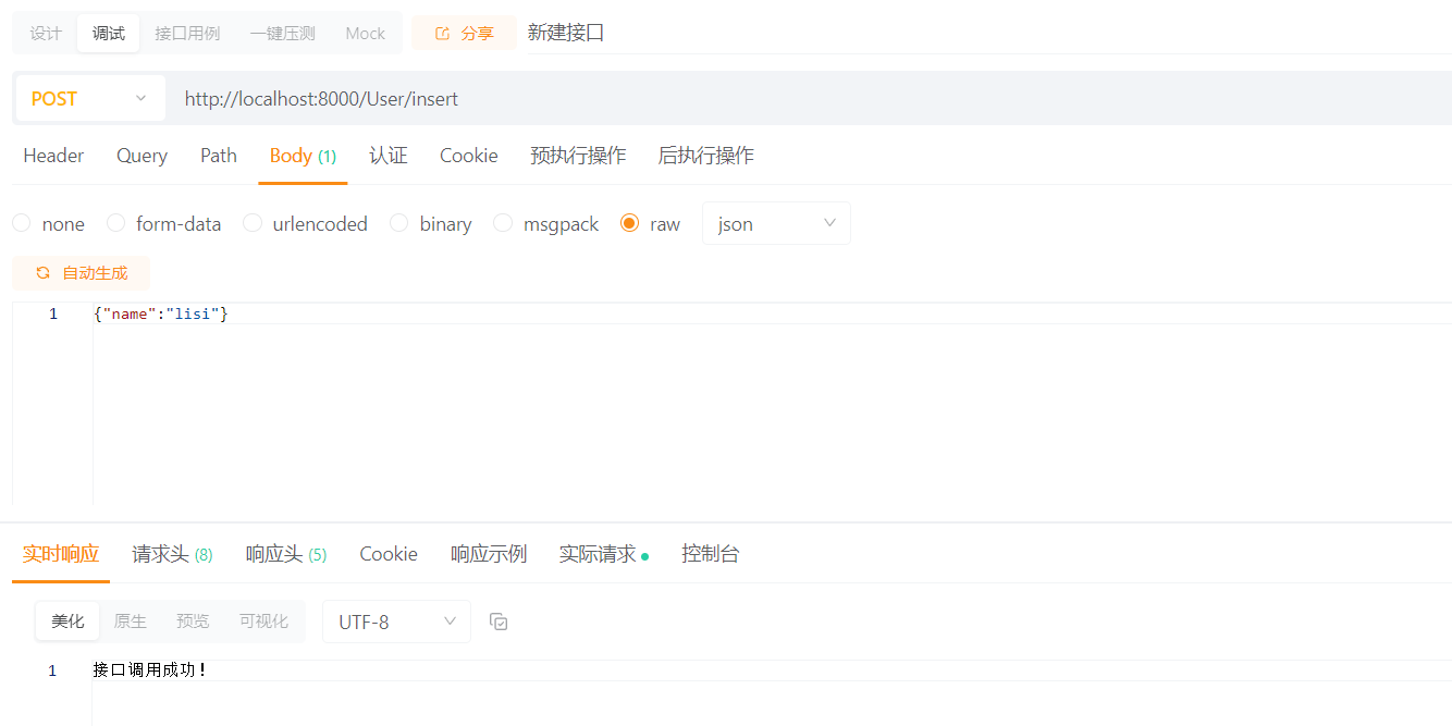使用接口调试工具测试插入方法以及查询方法写入数据