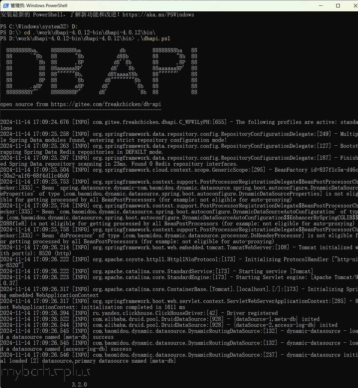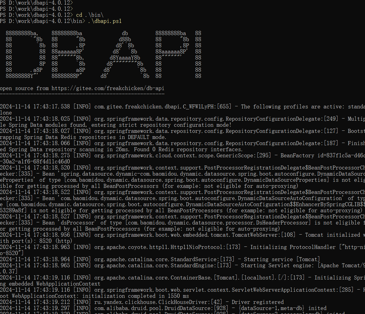 再次进入bin目录。并以PowerShell运行dbapi.ps1
