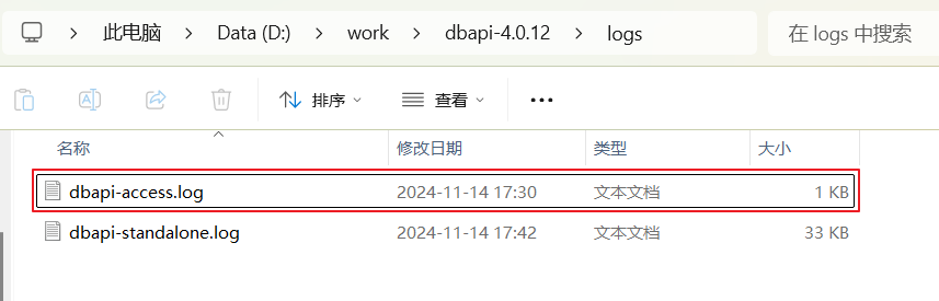 运行完自动停止运行并在结尾处打印一串序列号,或者进入项目的logs/dbapi-access.log,在结尾处查看序列号