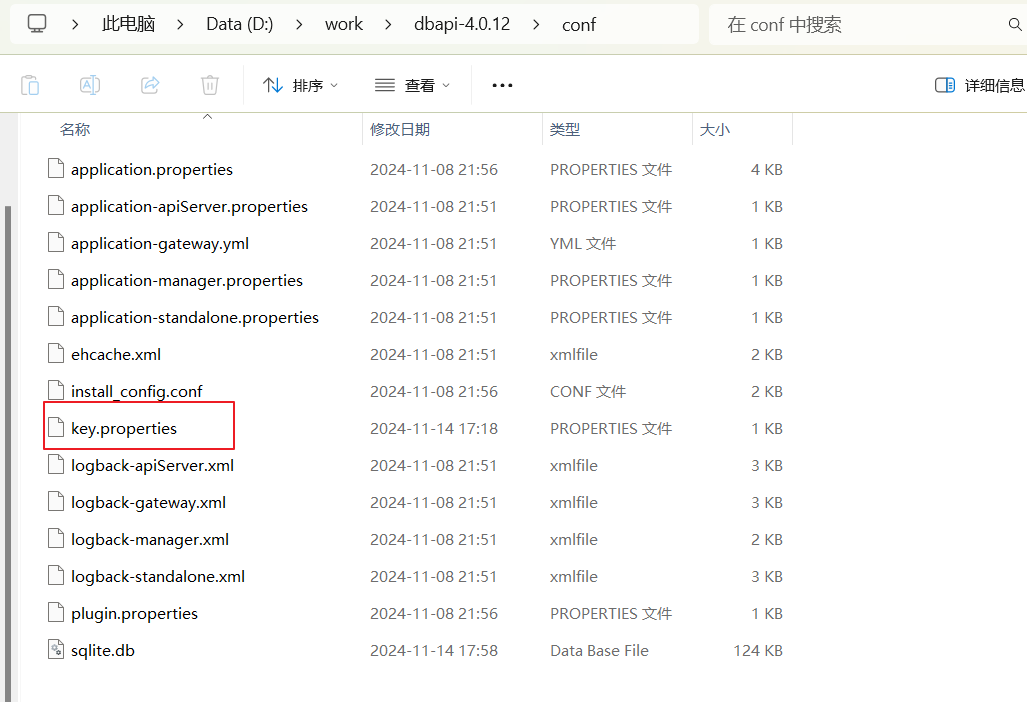 复制这串license,进入项目conf文件夹,并修改<font style="color:rgb(237, 85, 68);">key.properties</font>的license值