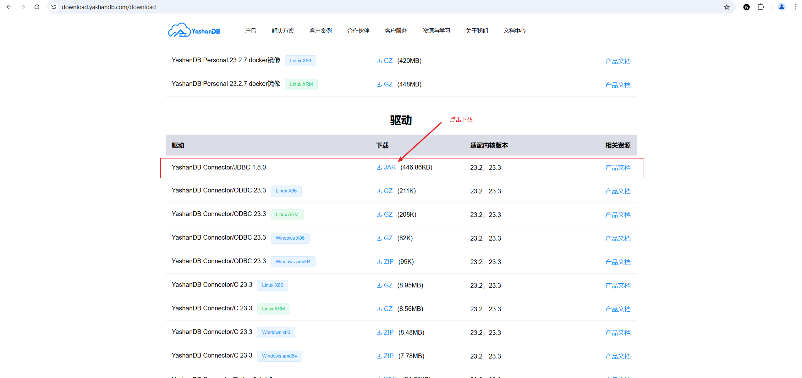 想要DBApi集成YashanDB,首先需要获取YashanDB的JDBC驱动,可以从官网下载获取:::info
