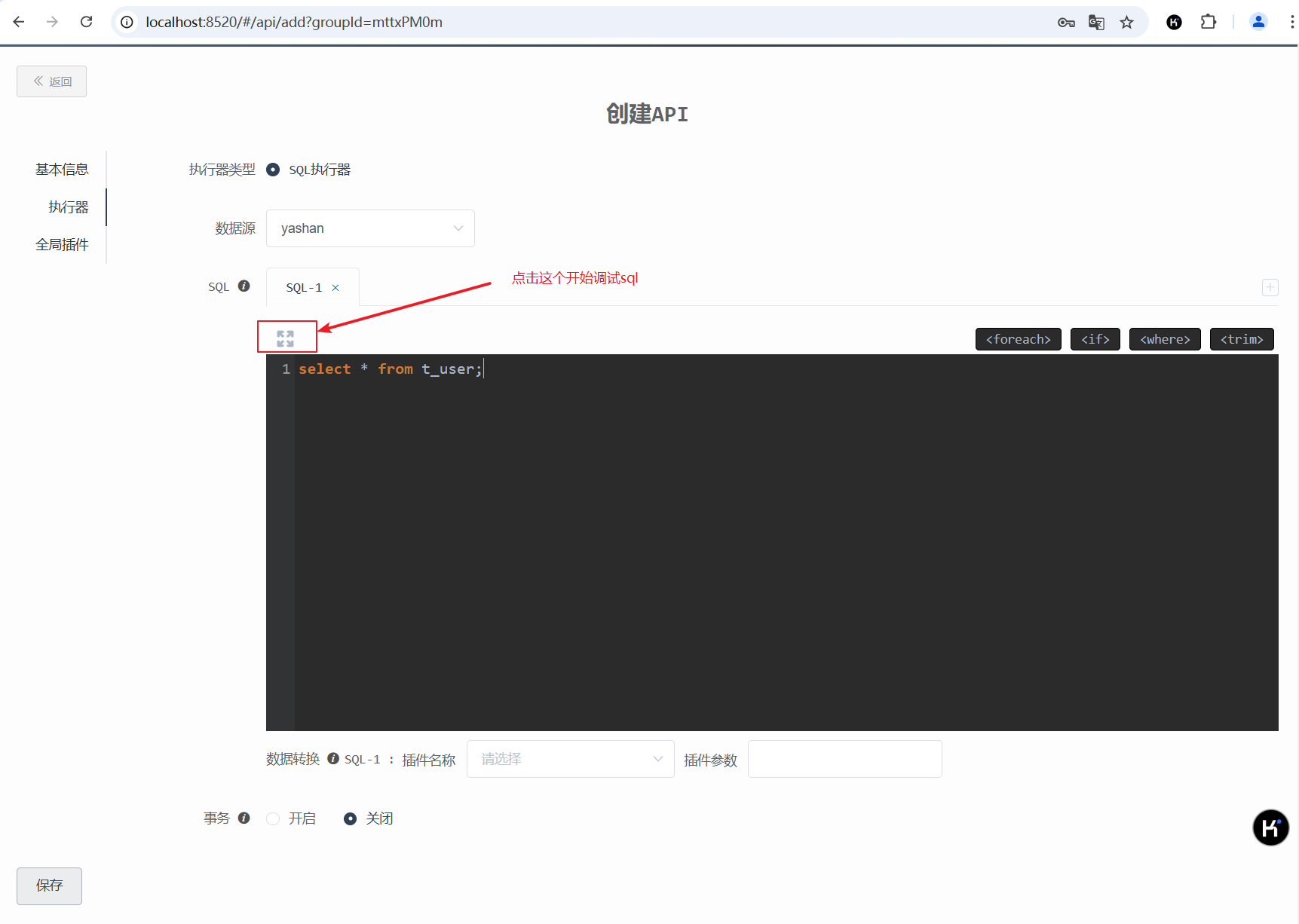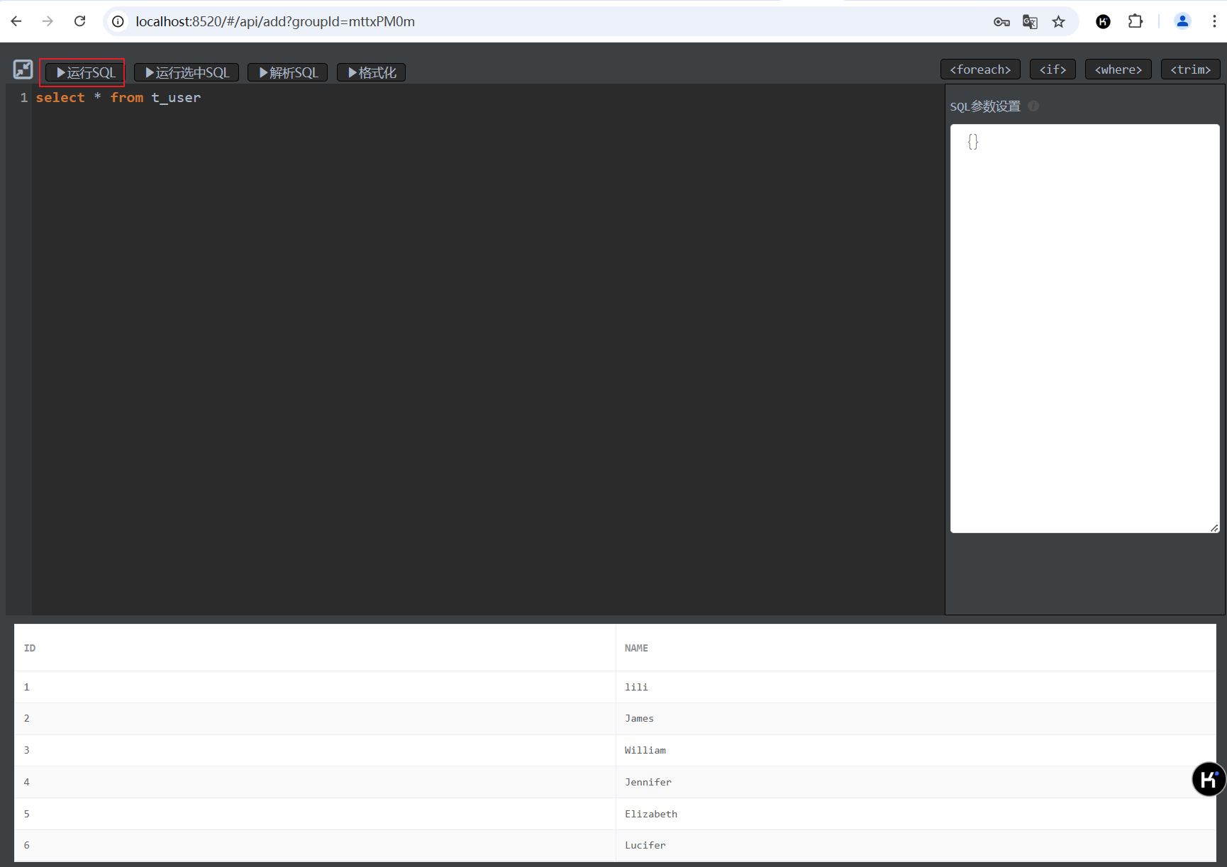 在sql执行器内填写查询语句,这里是查询全部用户信息;